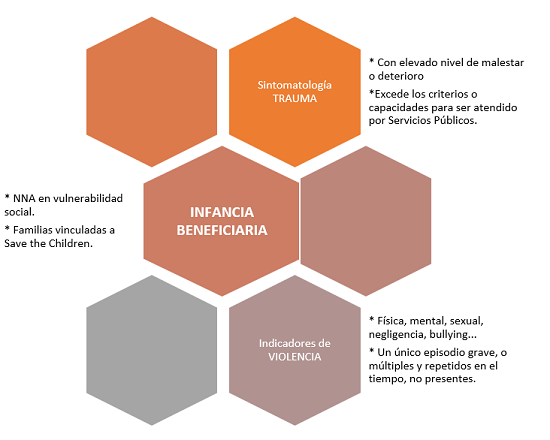 - atención psicológica especializada para aquellos niños y niñas que muestran sintomatología traumática provocada por haber sufrido violencia.