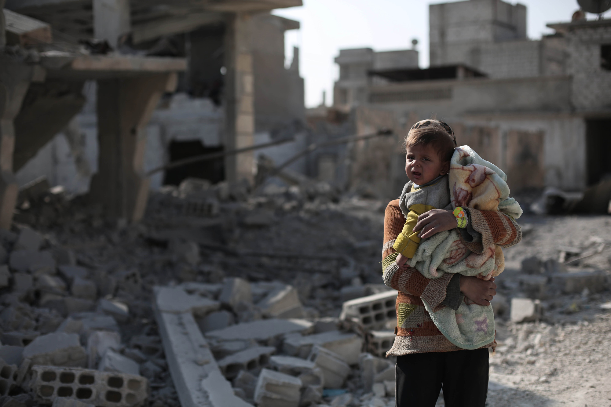 La imagen que se dibuja sobre las ciudades sitiadas es la del enorme sufrimiento e injusticia. Niños enfermos muriendo mientras que los medicamentos que necesitan están al otro lado del puesto de control. Niños y niñas forzados a comer hojas o comida para animales a tan solo unos kilómetros de los almacenes de comida. Familias que se congelan de frío incapaces de encontrar combustible, rasgan el relleno de los colchones en busca de algo que quemar, mientras que los niños se esconden por miedo a los bombardeos que siguen cayendo sobre una población atrapada.